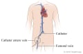 - There is a small chance that the catheter may damage a blood vessel or dislodge a piece of clotted blood or fat from the vessel wall. The clot or fat can block blood flow to the brain, arm, leg, or intestine (bowel).